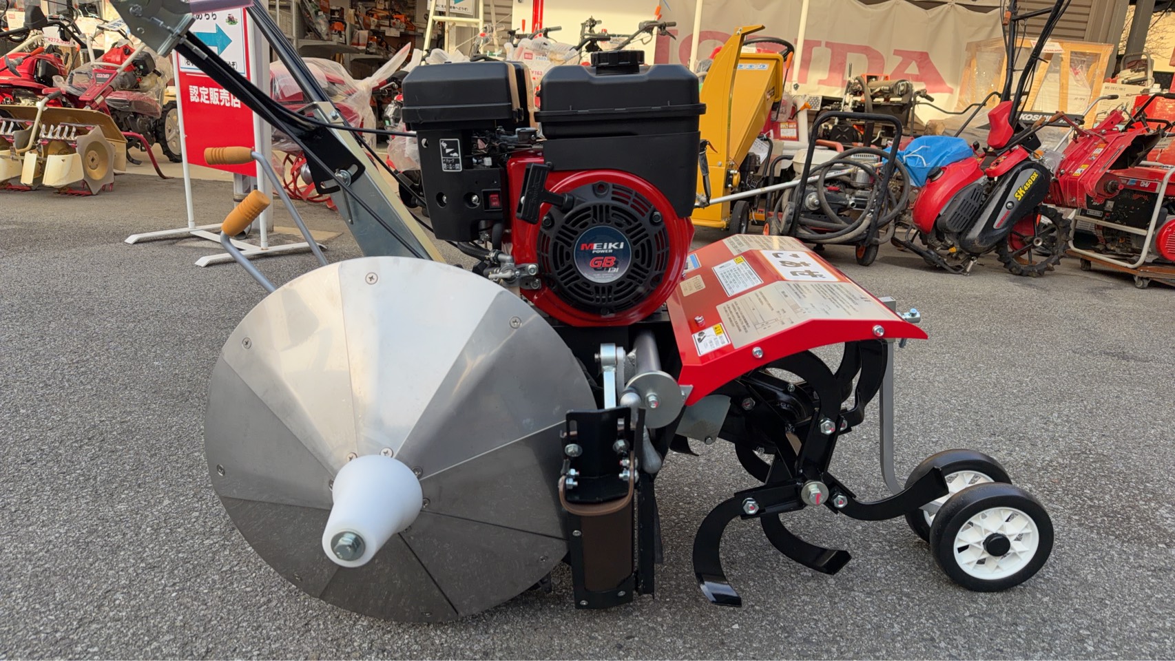 鷹岡工業所 乾田あぜぬり専用機 こあぜ 《AZ35FB》 2026年3月14日 最終更新日時 : 2026年3月14日 staff 12345678 鷹岡工業所 乾田あぜぬり専用機 こあぜ 《AZ35FB》 定価¥469,425 (税込) ※価格は別途お問合せ下さい。 ご購入・お問い合わせはこちら お支払い方法について 製品仕様 寸法(長×幅×高):1200×700×900mm 重量:75㎏ 作業効率は約240m/h あぜ高:22cm・25cm 2段階 レバー1つで 停止→高あぜ→低あぜ の切換えが可能。 土を整形板で叩き固めて、8面ドラムの回転で更に固める独自の機構を採用。 表面の仕上がりが綺麗で、あぜの締まりも一段とアップします。