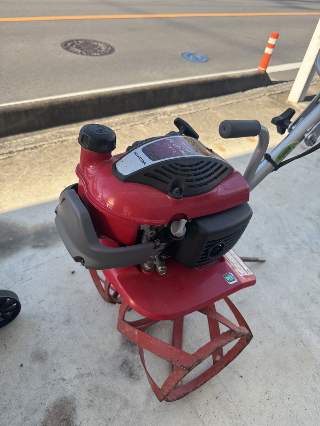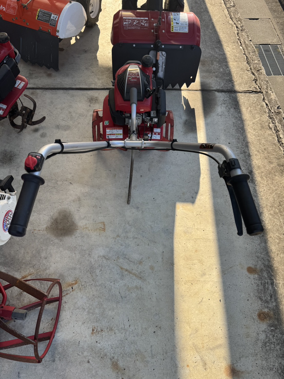 ホンダ 耕うん機《FG201JAT》スパイラルローター付き ¥59,800 2025年12月6日 最終更新日時 : 2025年12月16日 staff 123456 ホンダ 耕うん機《FG201JAT》スパイラルローター付き ¥59,800 (税込) 現行型式メーカー希望小売価格:¥103,290.- ご購入・お問い合わせはこちら お支払い方法について 製品仕様 寸法(長×幅×高):1060×475×990(mm) 機体重量:18kg 最大出力:2.2馬力 総排気量:49.4cm3 変速段数:前進1段 作業幅:460mm 燃料タンク容量:0.35L ハンドル上下調節 除草仕様 整備状況:整備済み 運賃:応相談